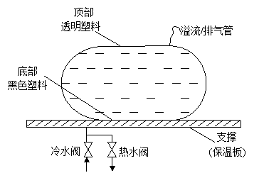 1、 塑料袋式太陽能熱水器:塑料袋式太陽能熱水器的結構示意如下圖所示。