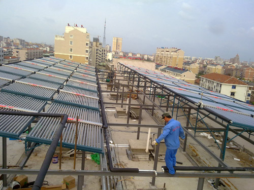 太陽能熱(re)水工(gong)(gong)(gong)程模塊主要是(shi)(shi)針(zhen)對用(yong)熱(re)水量比較大的用(yong)戶,一般超過三噸以(yi)上,都會(hui)用(yong)到太陽能熱(re)水工(gong)(gong)(gong)程模塊。常見的太陽能熱(re)水器工(gong)(gong)(gong)程模塊都是(shi)(shi)25一排共二排,中(zhong)間(jian)是(shi)(shi)聯箱(xiang)連接的,一組是(shi)(shi)50支(zhi)(zhi)真空(kong)管,也就(jiu)是(shi)(shi)半噸水。還有一種(zhong)就(jiu)是(shi)(shi)單邊模塊,因(yin)為是(shi)(shi)廠家,我們可以(yi)就(jiu)您(nin)安(an)裝的場地而定制,10支(zhi)(zhi)工(gong)(gong)(gong)15支(zhi)(zhi)或20支(zhi)(zhi)都可以(yi)。